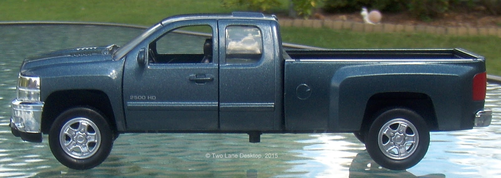 What's been happening in the past year is a boom in modern truck replica's: The Ram 1500 is getting more notice after the 2013 update that made the truck an award-winner. The Chevy Silverado, despite the negative reviews about the carry-over styling, got more replica's made than the previous-generation. The Ford F-150 is rebounding with an all-new aluminum-skin generation. One field that has not received attention lately, aside from the Japan automaker's versions, is the Heavy Duty versions of the Big 3 US automakers, and that category has been growing rapidly as well to a scary personal transportation kind more than the workhorse type (although these HD trucks have been seen more on the jobsite than the mall parking lot). Only one diecast manufacturer has covered all three Heavy Duty pickups and that's New-Ray in 1:32 scale. I've been impressed with the Ford F-350 that I got years ago and is more common to find than the other two, which I had to buy online. Despite the generation gaps both are pretty capable so it's time to see who's the best.